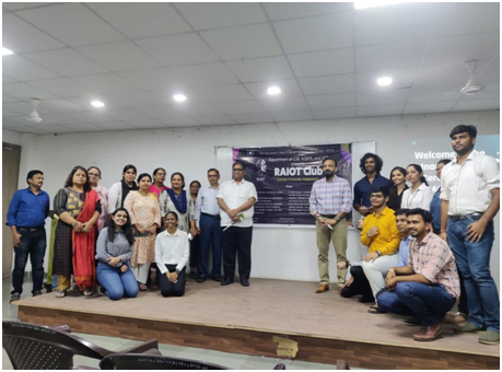 • RAIOT i.e. Researchers of AI & IOT. RAIOT is a tech club which gives you the opportunity to learn, grow and master skills to make your career journey glorious.