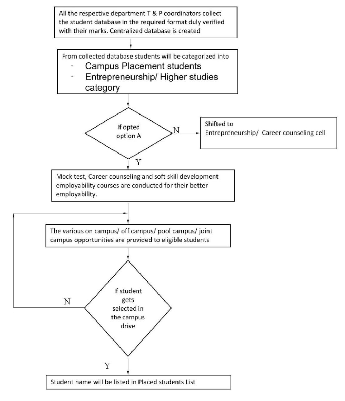 T & P cell sort out the students into different categories , if the student opting for the college placement then he will undergo training on Aptitude and soft skills or personality development courses and make him ready campus drive and more employable.