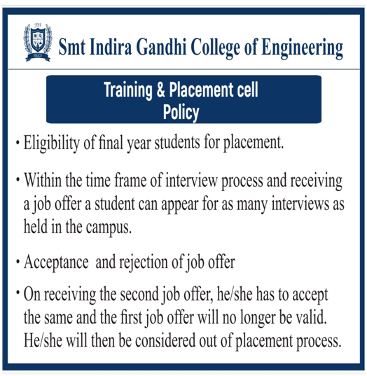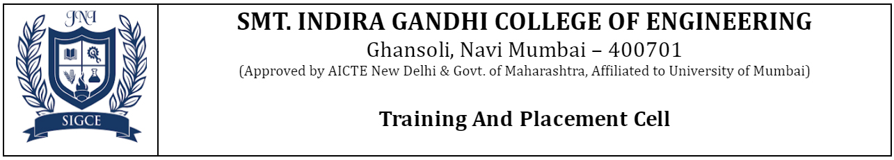 Our College is Centrally Located in Navi Mumbai being in close proximity with Vashi, Thane, Dhirubhai Ambani Knowledge city, Reliance Jio IT park and Millennium Business Park, Mahape. Our college has separate Training & Placement and career guidance Cell where industrial experienced personal has been posted as Training & Placement officer.